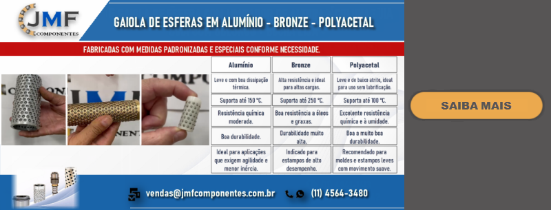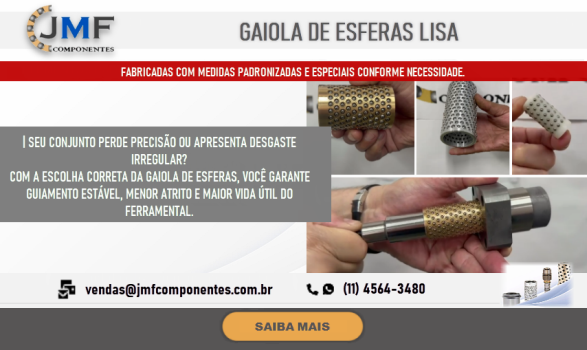 COM MAIS DE 35 ANOS DE ESPERIÊNCIA NO MERCADO, FOCADA NA FABRICAÇÃO DE GUIAS COM ESFERAS DE ALTA PRECISÃO PARA BASES DE ESTAMPO, MOLDES, MAQUINAS E DISPOSITIVOS EM GERAL